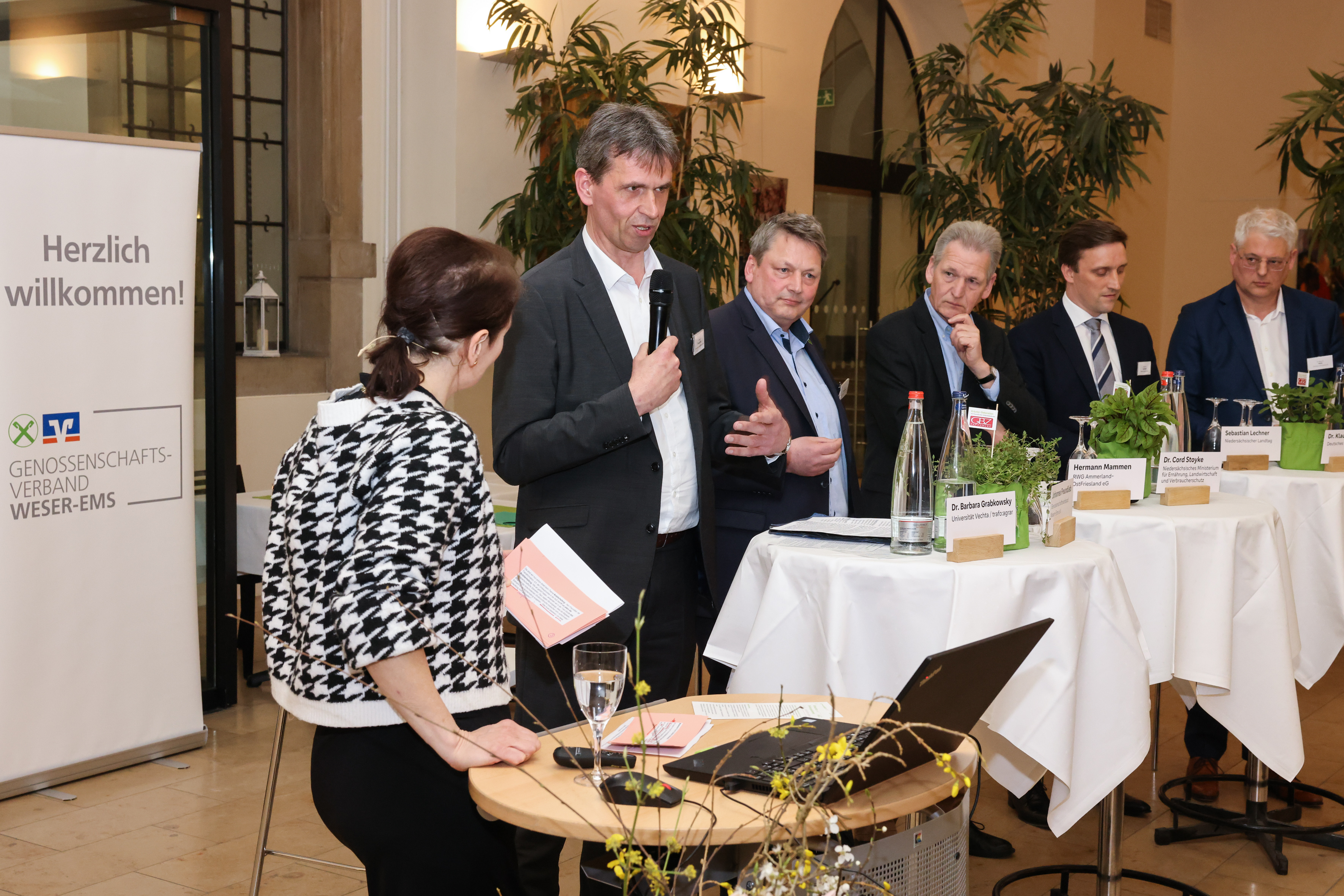 Auch der Landtagsvizepräsident Jens Nacke (CDU) aus dem Ammerland betonte in seinem Grußwort, dass das Thema Agrarwirtschaft in der Landespolitik einen hohen Stellenwert einnehme. Für den notwendigen Wandel seien stets persönliche Einsicht und persönlicher Mut notwendig und ein gemeinschaftliches Vorgehen, das mehr bewegen könne als es der einzelne vermag. „Gerade aus diesen Gründen sind Genossenschaften, die genau diese Werte verkörpern, wichtiger denn je für unser Land“, sagte Nacke. Anschließend erlebten rund 100 Gäste aus Landespolitik, Verwaltung und Wirtschaft eine intensive Podiumsdiskussion zum Thema „Landwirtschaft in der Transformation – Chancen und Potenziale für eine zukunftsfähige Agrar- und Ernährungsbranche“.